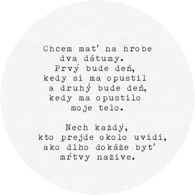 Ten kúsok, čo v tebe umrie, ti spraví viac miesta na všetko, čo ostalo. A toho je oveľa viac. Na to sa sústreď a k tomu sa vždy vracaj. V každú ťažkú chvíľu, pri každom spomenutí ich mena, pri každej spomienke na váš spoločný smiech, pri každom počítaní chvíľ, čo ste nestihli, pri všetkom, čo chýba. Zober si všetky tie kúsky, čo ti ostali a vystavaj si z nich obrázok krásneho života. Veď vytvoriť si život, pre ktorý sa oplatí žiť, je naša nesmrteľnosť.